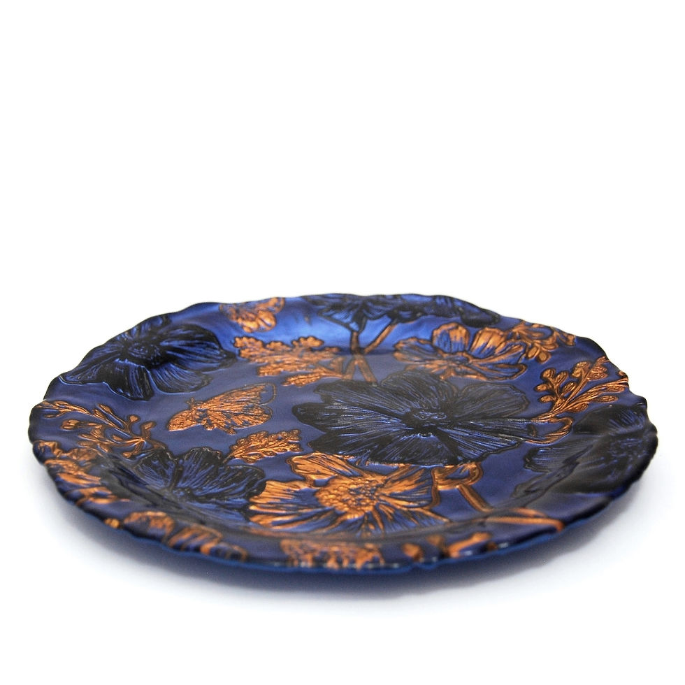 Set/4 DAMASK 6.5" BLUE VELVET CANAPE PLATES